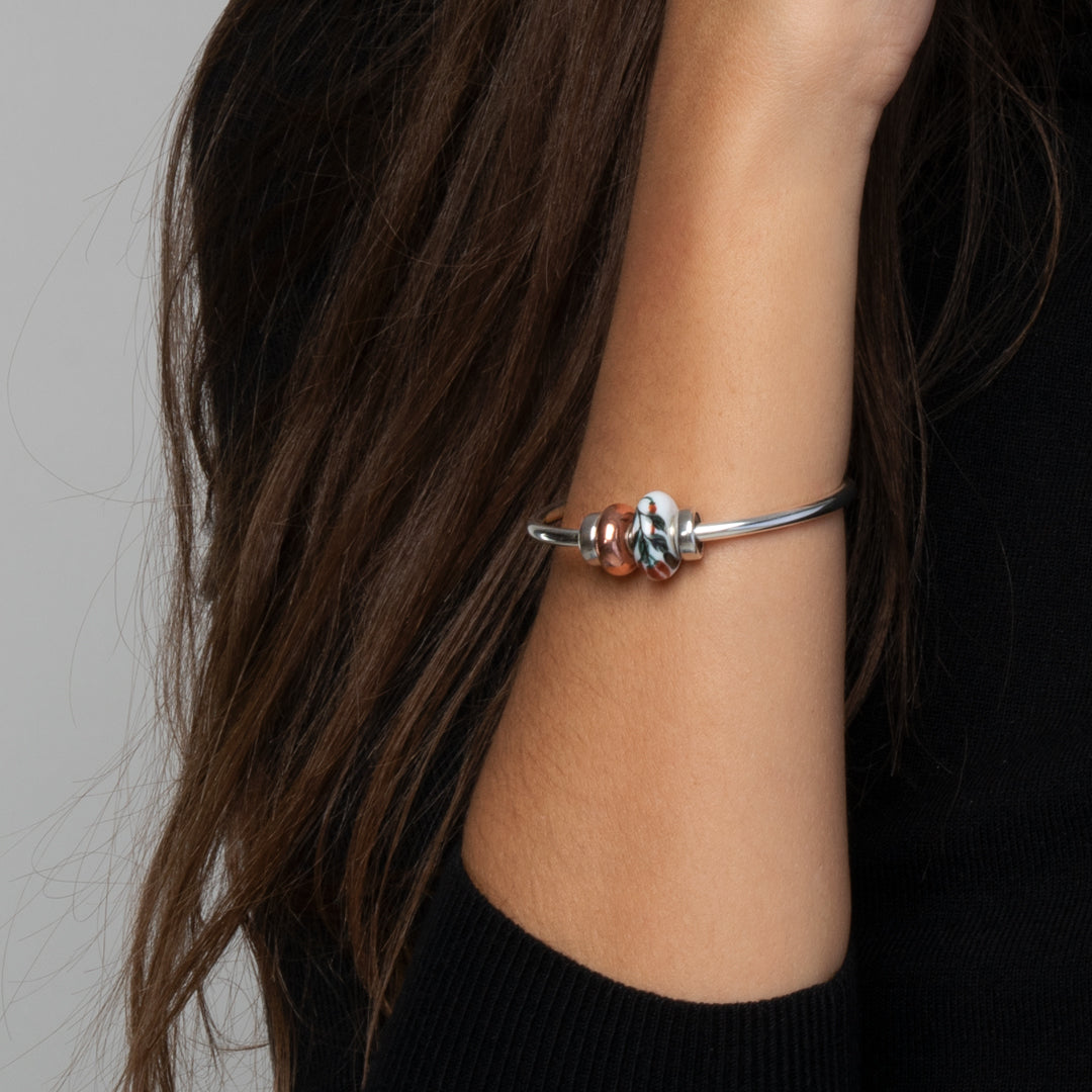 With its sleek, minimalist design, this versatile accessory is perfect for wearing solo, stacking with other bangles, or styled with your favourite beads. The bangle’s solid construction ensures it not only exudes luxury but also stands the test of time, making it a timeless addition to any jewellery collection. Simply add spacers on either side of your beads to secure them in place.