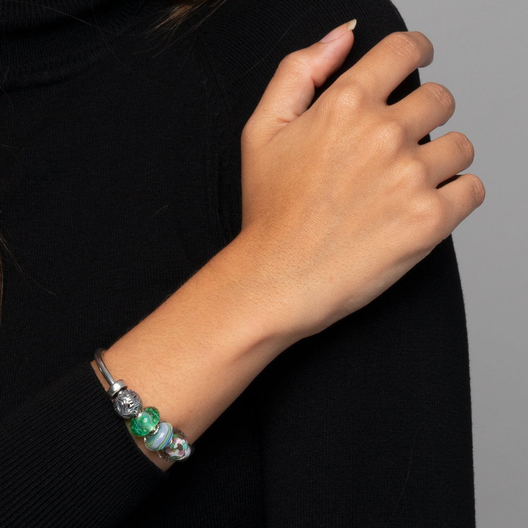 Silver is a supple metal that is softer than gold. Silver can be polished to a mirror-like shine. The characteristic lightness of the colour is due to the metal’s very effective light-reflecting properties. Trollbeads are produced in Sterling silver, consisting of 92.5% pure silver and 7.5% other metals, primarily copper. Therefore, all Trollbeads silver beads are stamped with the hallmark “LAA 925s”.
