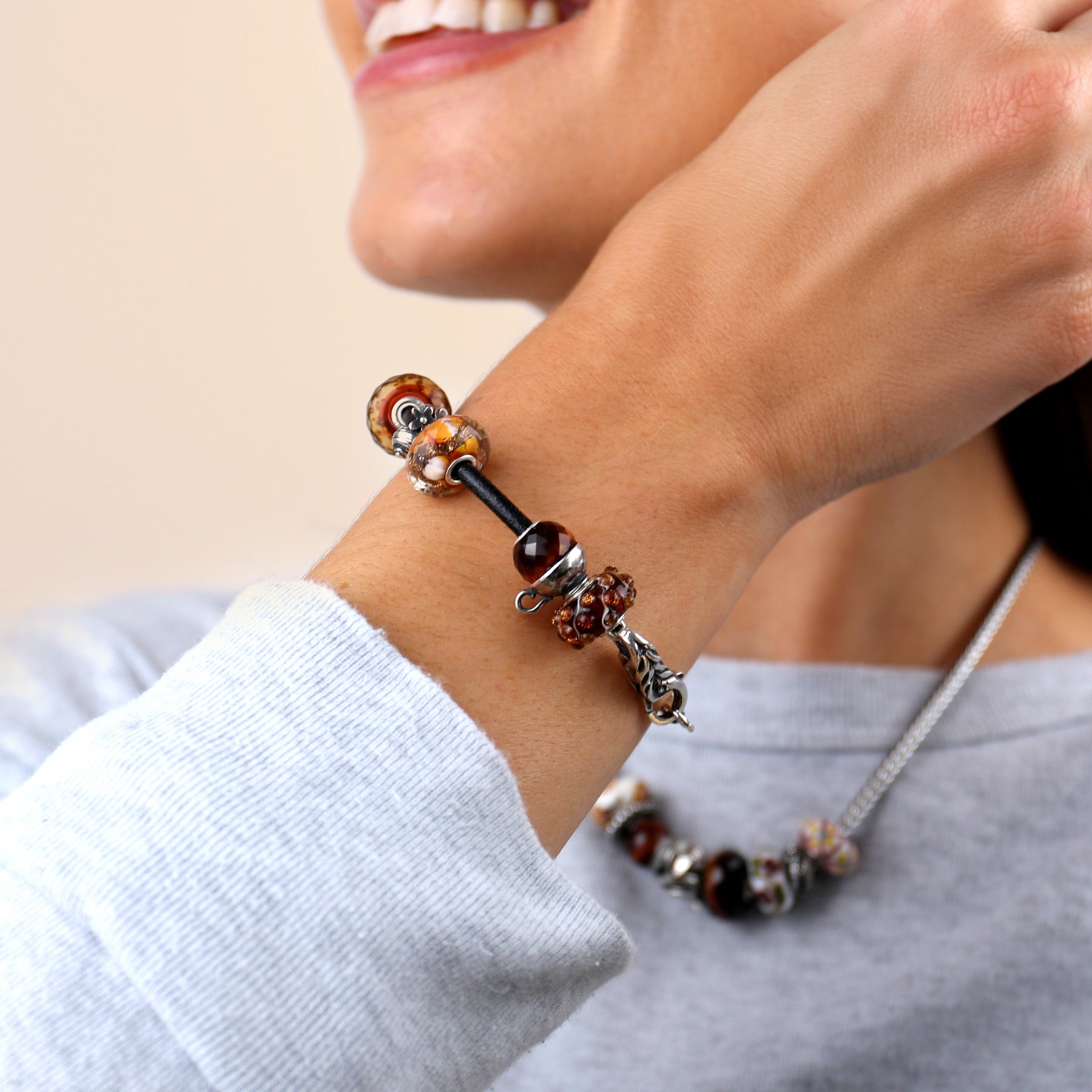 Glass Trollbeads are distinct artworks, each crafted by hand over an open flame. Due to this meticulous process, they exhibit slight variations in size, colour, and design, adding to their unique charm and individuality. No two humans are alike… and this goes for glass Trollbeads too.
