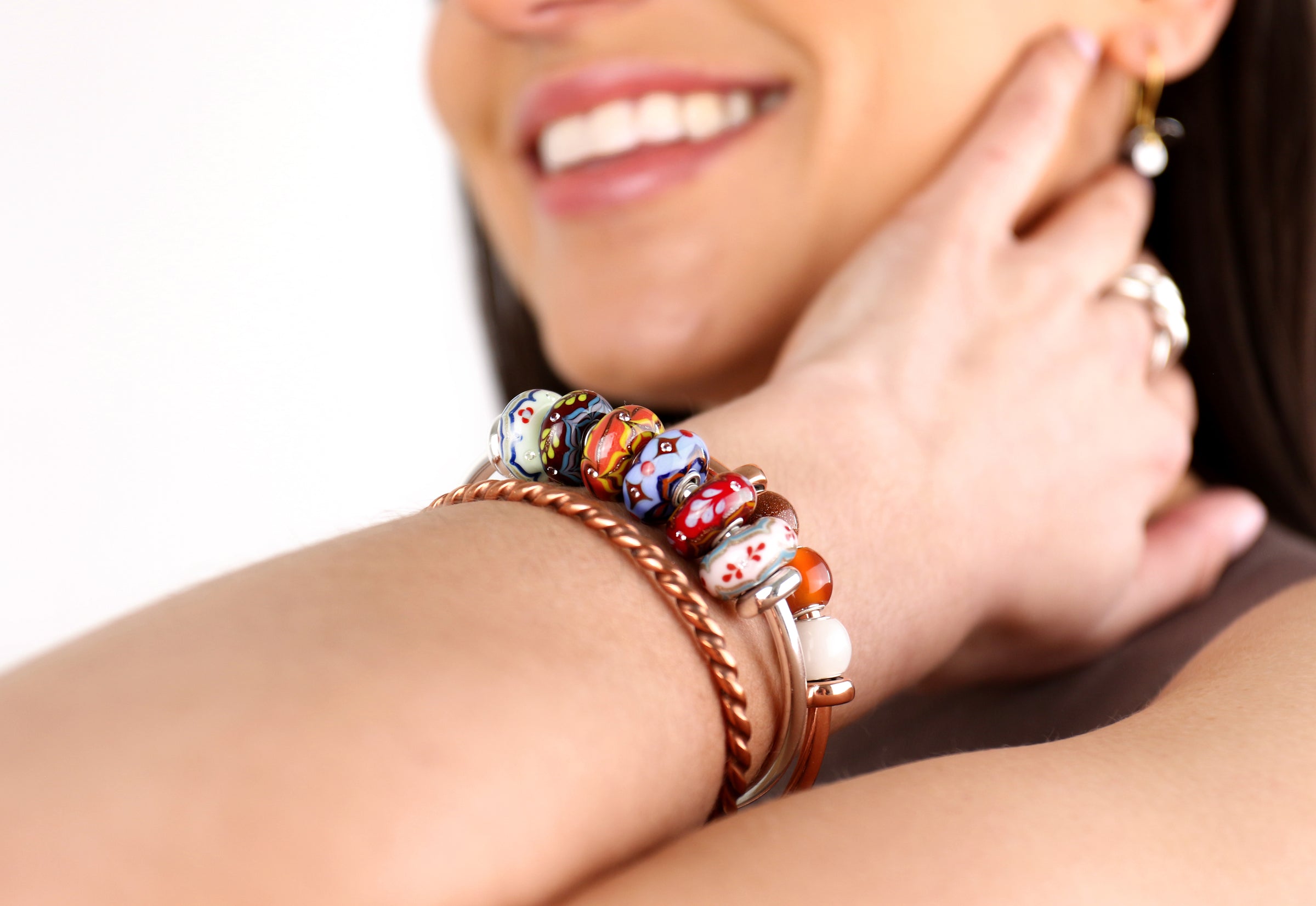 These sought-after beads are handcrafted by skilled artisans using a variety of materials including Sterling silver, Murano glass, porcelain, and precious stones.