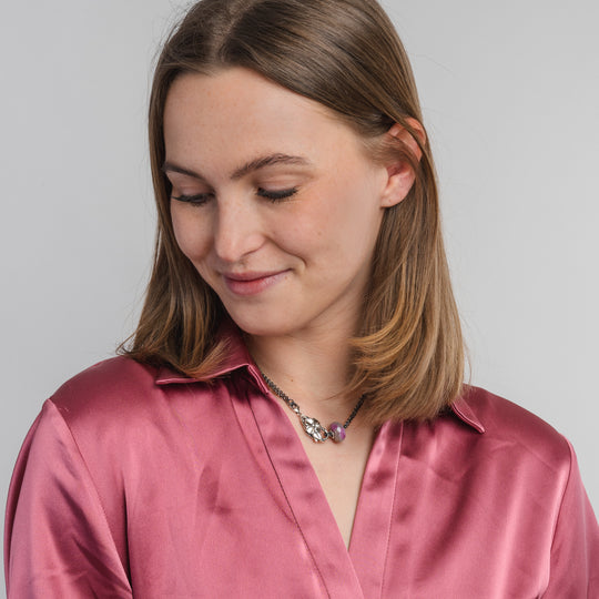 The Changeable Fantasy Necklace allows you to create a truly custom necklace! This lockless chain has an inserted eyelet for you to be able to attach the pendant of your choice and change it whenever you want. Wear the necklace long with a pendant, or wear it short by using a lock in the eyelet. Its standout feature is easy customisation - beads can be added effortlessly above the pendant without tools, allowing for endless personalisation. See images for guidance and inspiration.