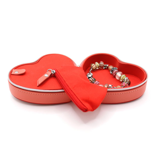 Keep your treasures safe and stylish with the Heart to Heart Jewellery Box, crafted from vibrant red and pink faux leather in a charming heart-shaped design. Secured with a smooth zip closure, it’s both practical and eye-catching. Perfect for storing your cherished jewellery at home or keeping your favourite pieces organised while travelling, it offers thoughtful details inside—a soft-lined pouch, spacious compartments, and a movable lid for effortless organisation. Combining elegance and functionality, this jewellery box adds a touch of romance to your collection.