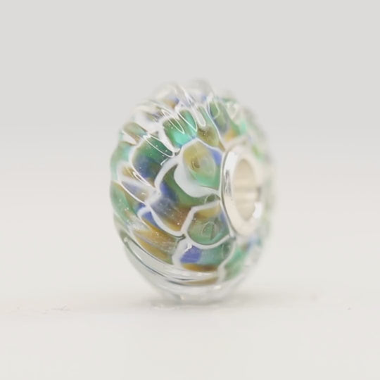 Let the gentle flow of the ocean inspire you with the Rippled Mermaid Bead. Created from colourful glass in shades of yellow, brown, green, and blue, this bead embodies the serene beauty of water’s soft ripples. Its mermaid-inspired pattern dances beneath the surface, capturing the essence of an underwater world. Wear it as a reminder of nature's quiet elegance and the fluidity of your own journey.