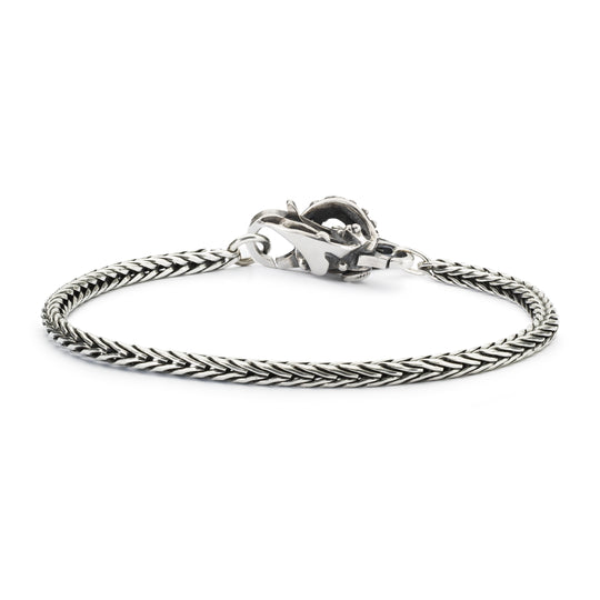 The oxidized Sterling silver bracelet has been masterfully handcrafted into Trollbeads' signature foxtail chain. The Foxtail chain consists of joints that are not soldered together, which makes the chain very flexible. The bracelet comes with a Five Senses Clasp.