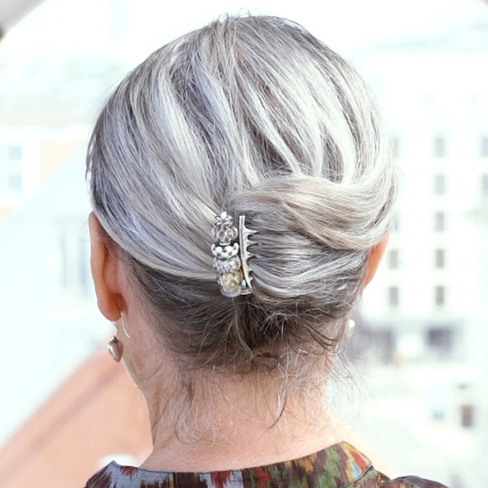 The French Twist Comb in sterling silver embodies timeless elegance, crafted to enhance classic hairstyles with ease. Perfect for creating a polished French twist or adding sophistication to any look, this comb blends both functionality and style in one luxurious accessory.