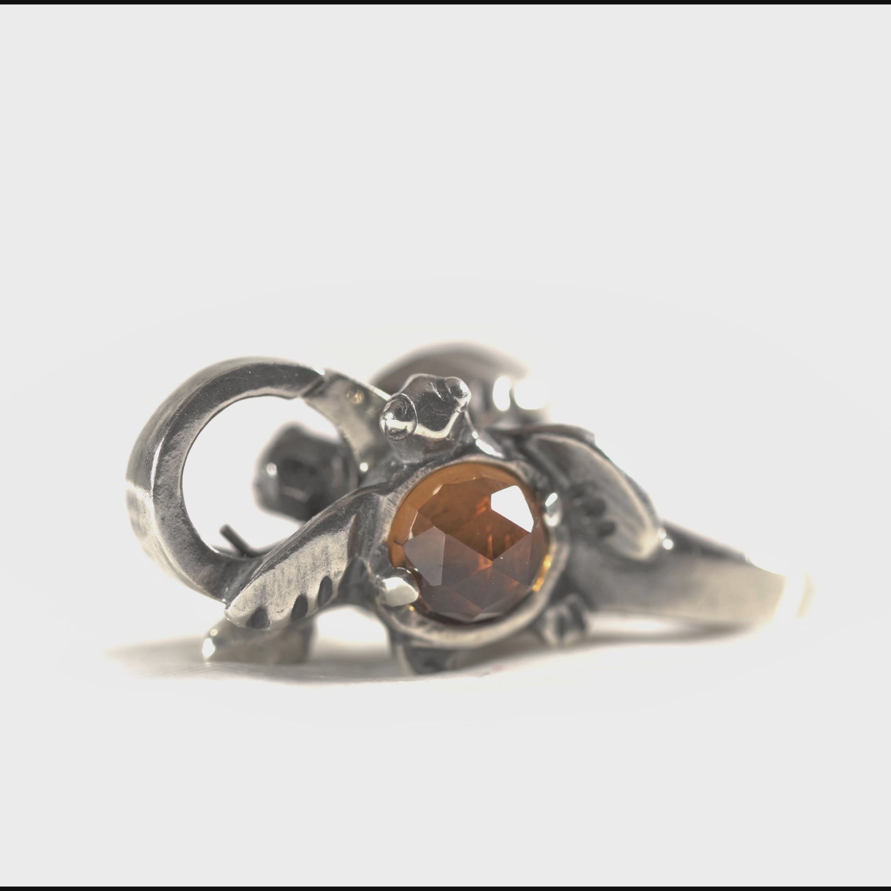 A silver clasp with a beautiful facetted Citrine Quartz on one side and a Cognac Quartz on the other.