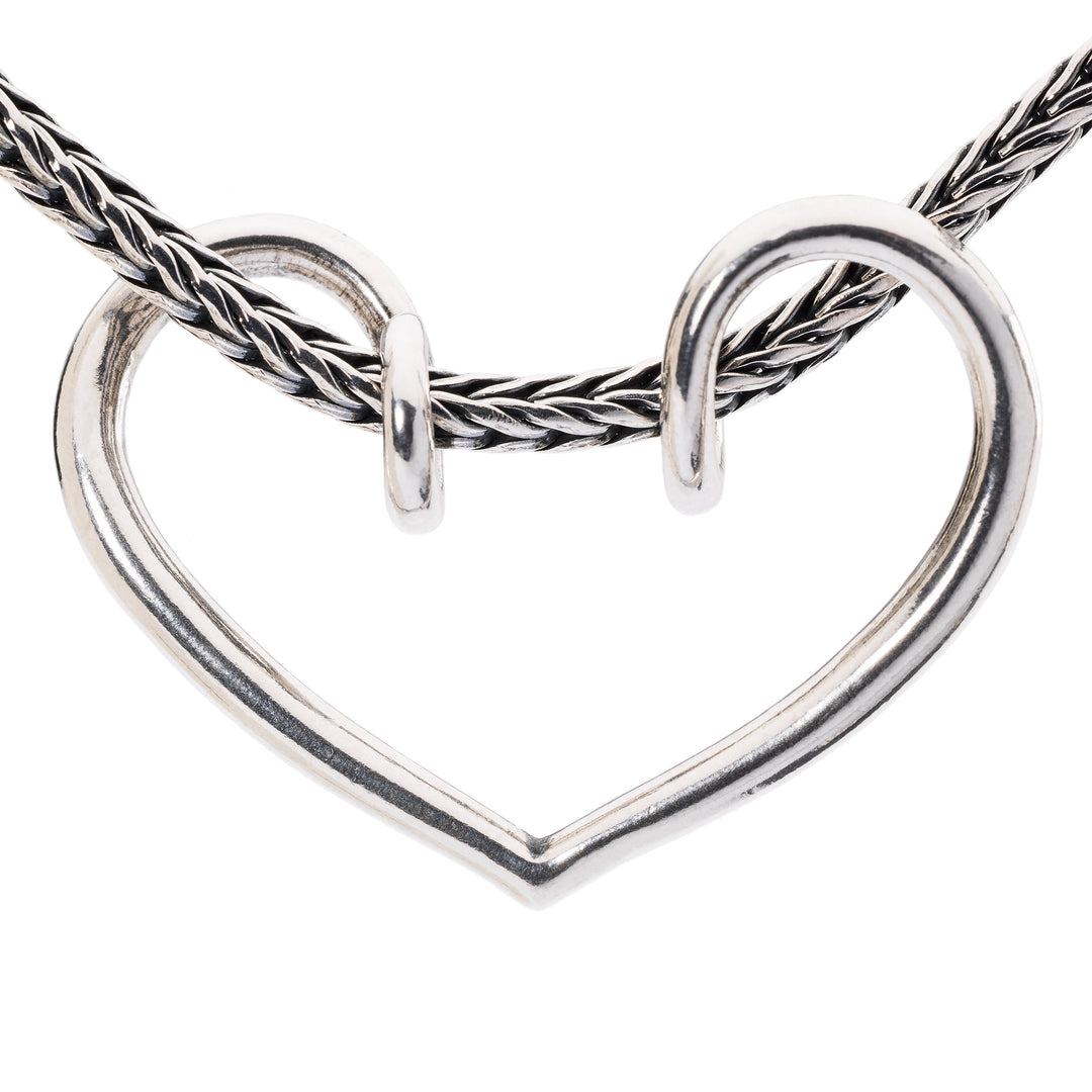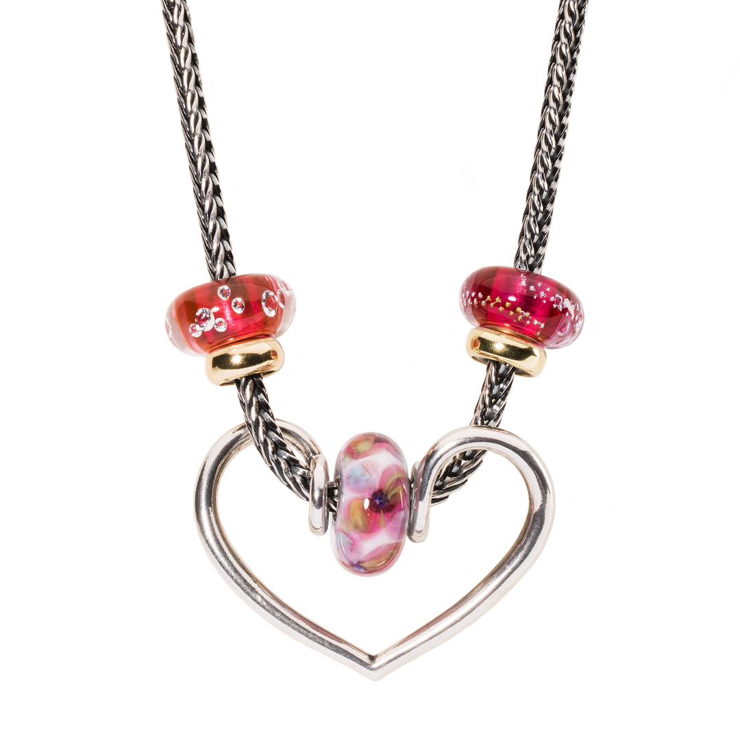The Romance Pendant features a heart shape, with a unique design where the ends meet at the dip of the heart. This creates a space to add your favourite bead, allowing you to personalise the pendant with a special touch.
