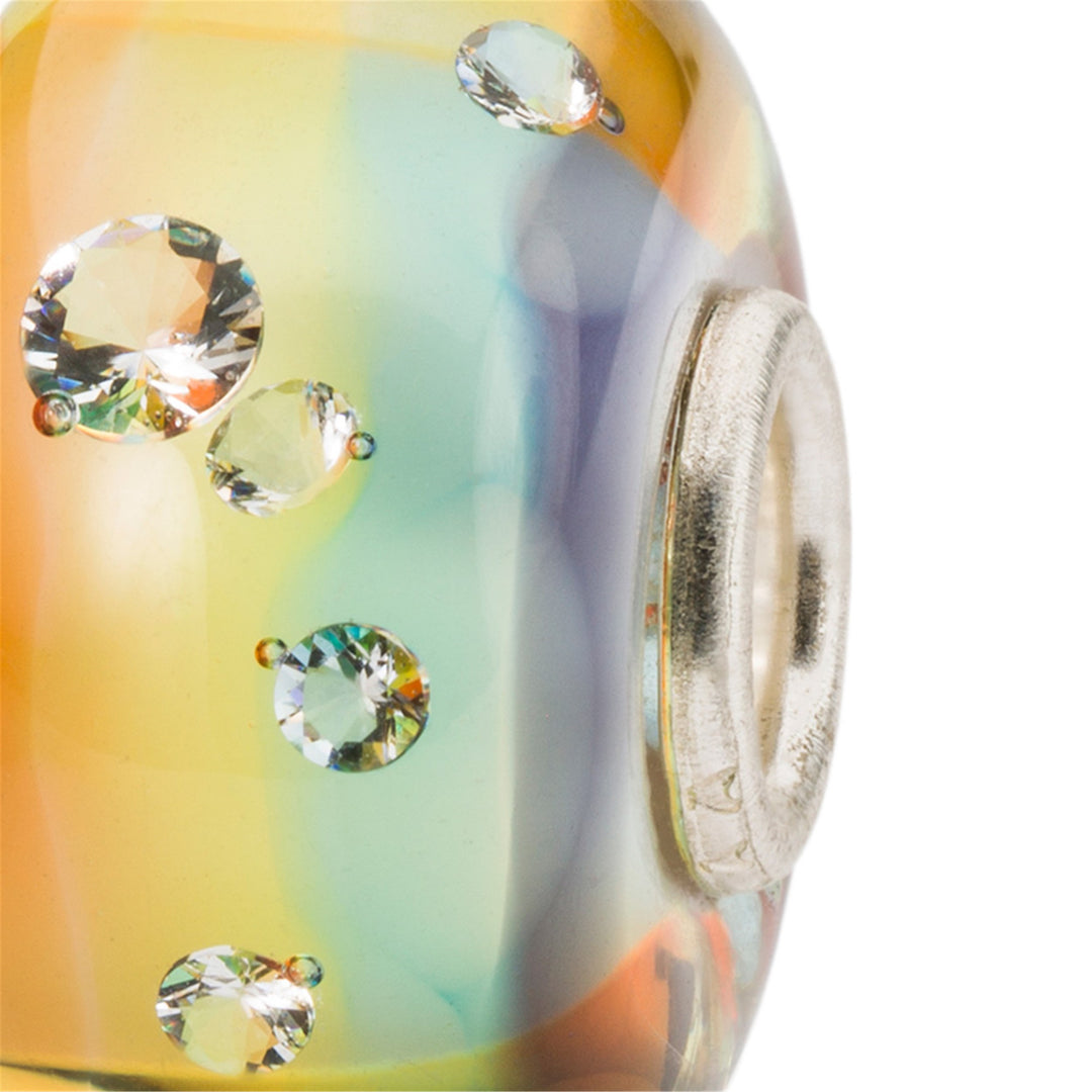 This glass bead sparkles with 13 embedded cubic zirconias, each adding a touch of brilliance to its enchanting design.