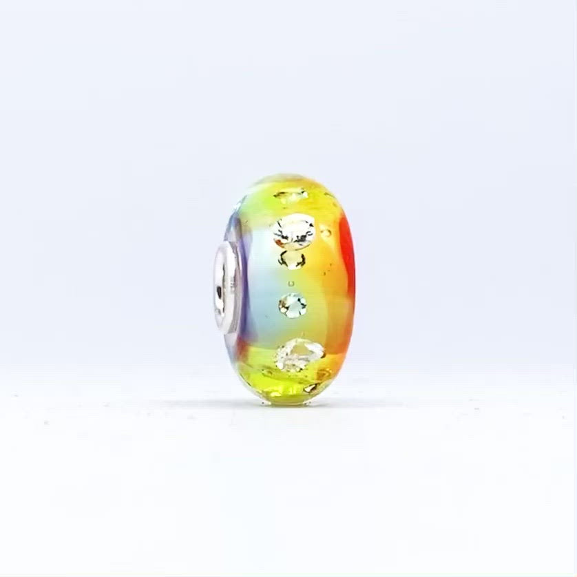 The Shade of Sparkle Rainbow Bead showcases a stunning blend of vibrant colours and shimmering accents, reminiscent of a radiant rainbow. Its joyful design brings a sense of positivity and celebration to your jewellery.