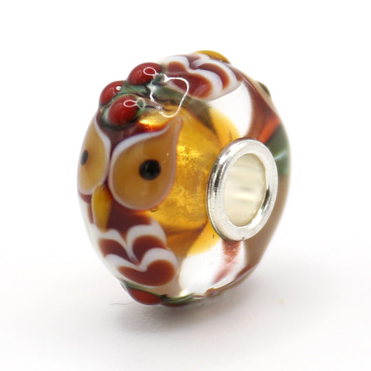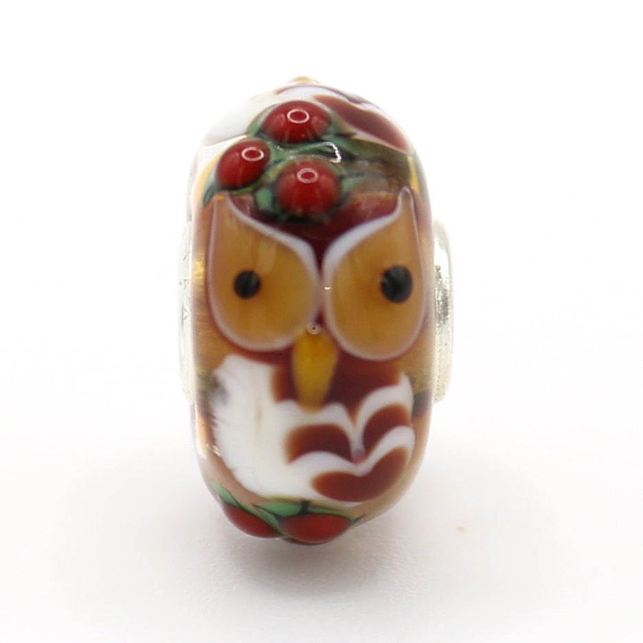 This enchanting bead showcases three wise owls perched among vibrant red berries and lush green leaves. Their thoughtful gazes and intricate feathers bring to life the peaceful beauty of woodland scenes, adding a touch of nature’s elegance to your collection.