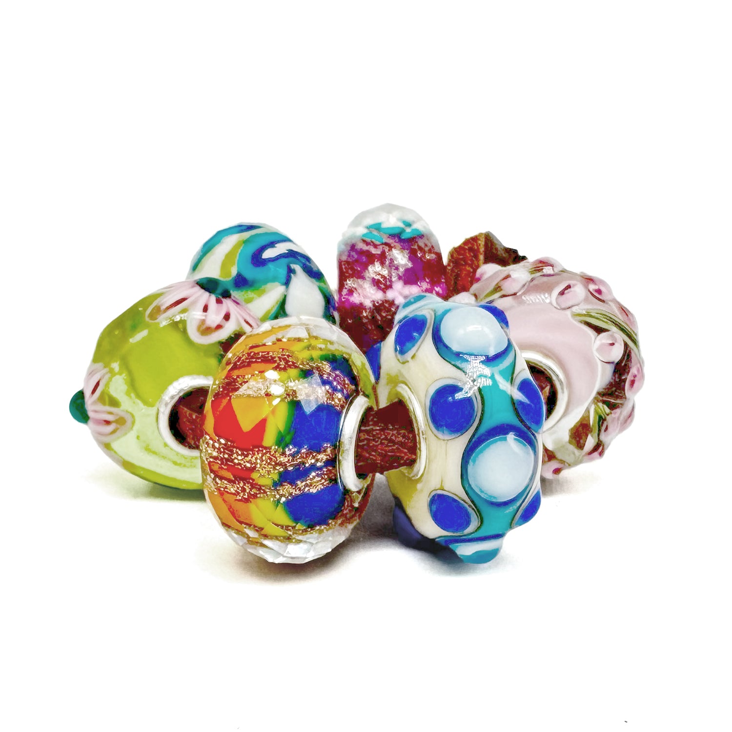 Glass Trollbeads are distinct artworks, each crafted by hand over an open flame. Due to this meticulous process, they exhibit slight variations in size, colour, and design, adding to their unique charm and individuality. No two humans are alike… and this goes for glass Trollbeads too.