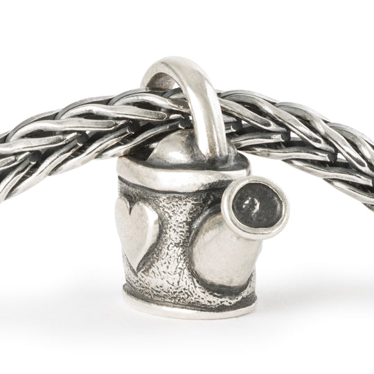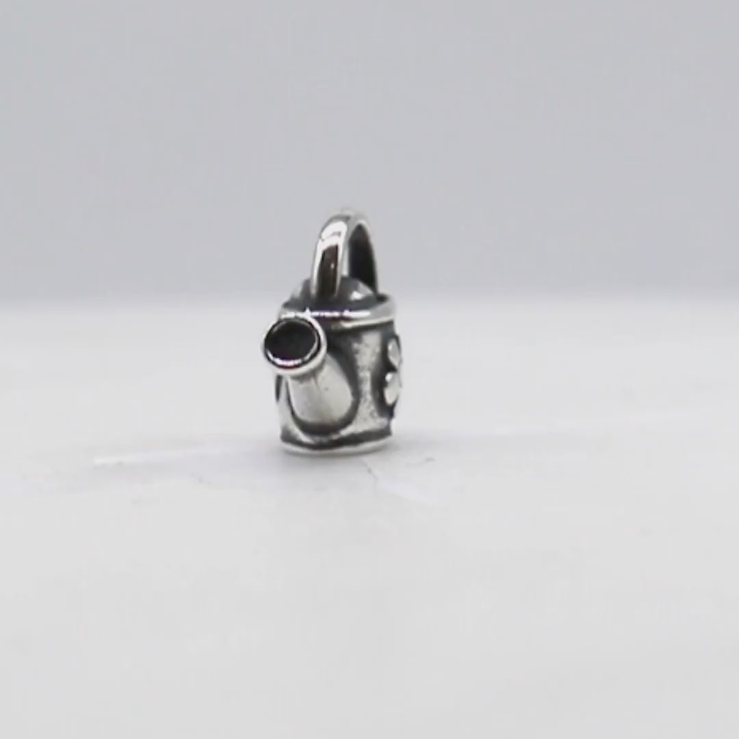 A dainty, delicate mini watering can, full of love to water and tend to all of your passions. Depicting a tiny flower detail on one side of the can, with a love heart on the other side. An open top adds more detail to this lifelike symbol and has a flat bottom so the bead can stand upright.