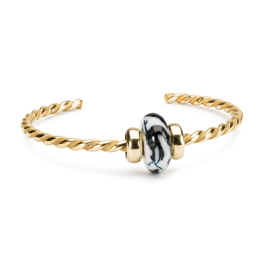 The Dragon of Power Bead features intricate black drawings on white porcelain, depicting the powerful and mythical form of a dragon. This striking design evokes strength, energy, and transformation, symbolising the dragon's revered position as a symbol of authority and protection in various cultures. The bold black artwork contrasts beautifully against the white porcelain, making it a captivating piece for those seeking to add a sense of power and mysticism to their collection.