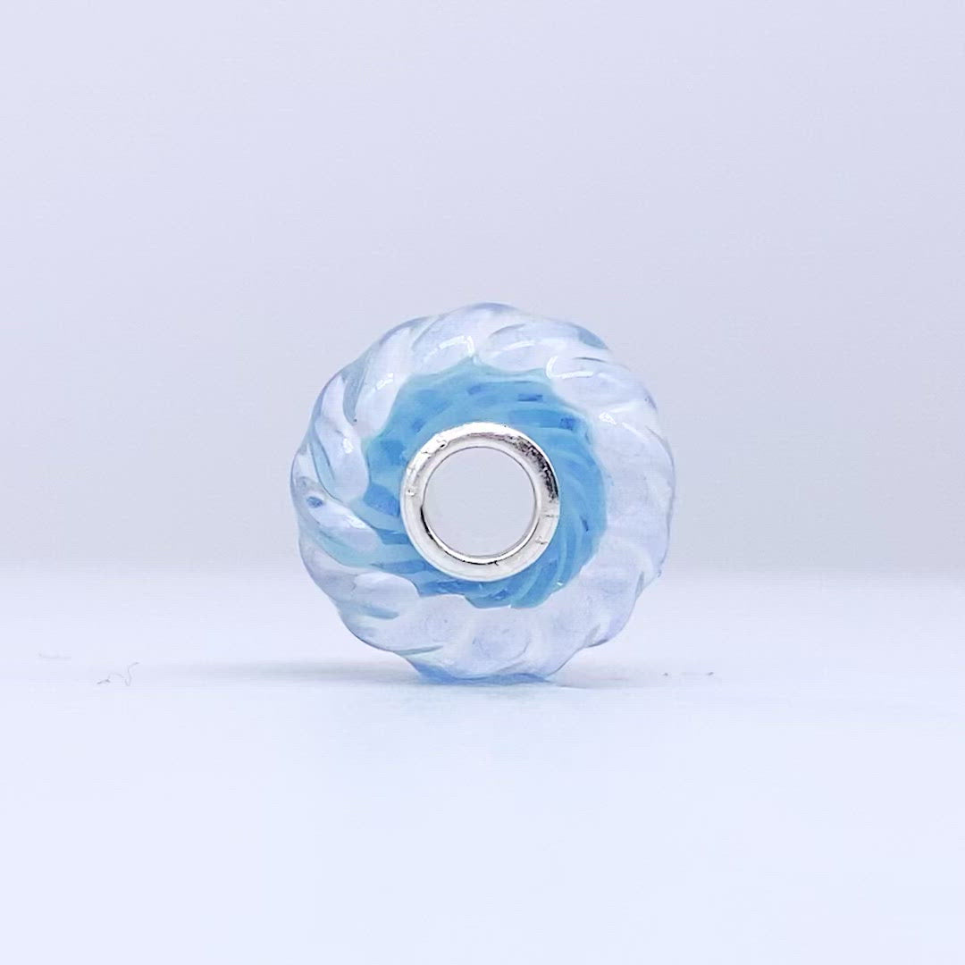 The Azure Ripples Bead features an undulating texture and a beautiful blend of blue hues, echoing the shimmer and depth of clear summer waters. A perfect piece to celebrate sunny days, seaside escapes, and memories made with those you love.