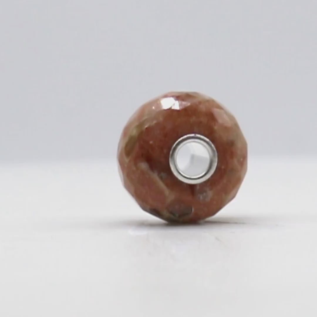 Like the Earth’s crust, this bead provides an array of vibrant colours, from peach to burnt orange... just like the deepest sunset over a hot dessert on the horizon. The faceting of the bead creates a myriad of depth and dimension. A pure masterpiece of nature’s finest materials and the artisans who collaborate to bring these unique pieces to life. Cherish each one as a centrepiece or combine with similar colours and tones to create a true original landscape.